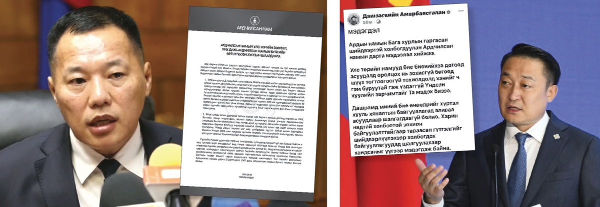 1. УИХ-ын дарга Д.Амарбаясгалан болон МАН-ын өндөр албан тушаалтнууд нь авлига, албан тушаал, эрүүгийн онц хүнд гэмт хэргүүдийг үйлдсэн байж болох утхай эрх баригч намын хариуцлагатай албан тушаал хашиж байсан болон одоо ажиллаж байгаа албан тушаалтнууд мэдэгдсэнийг, хууль шүүхийн байгууллага шалгаж тогтоох шаардлагатай. Энэхүү ноцтой мэдээлэл үнэн бол өнөөгийн УИХ-ын дарга хуулийн хариуцлага хүлээх ёстой бөгөөд асуудал эцэслэн шийдвэрлэгдэх хүртэл УИХ-ын дарга хуралдааныг удирдах ёс суртахууны эрхгүй гэж үзэж байна. Харин уг мэдээлэл худал бол гүтгэгч этгээдүүдэд зохих хуулийн хариуцлага хүлээлгэж шударга ёсыг хэрэгжүүлэх зүй ёсны шаардлага тавигдана.