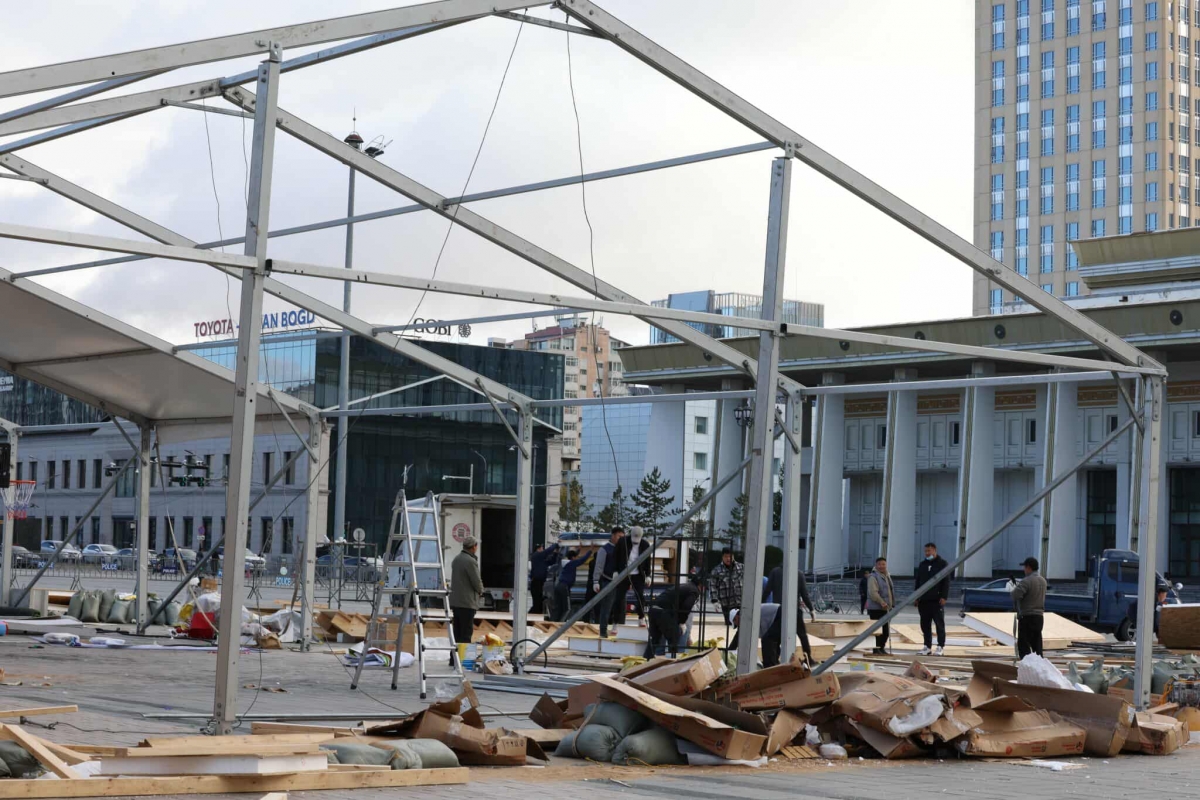 СБД-ийн 1 дүгээр хороо, Д.Сүхбаатарын талбайд 9 дүгээр сарын 19, 20, 21-нд "Номын баяр" арга хэмжээ болсон. Уг арга хэмжээнд оролцсон "Динза Цондоолойгийн анд найзууд" НҮТББ нь тухайн үед ашиглаж байсан байгууламжаа хураахгүй 10 гаруй хоноод байсан юм. Тус байгууллагын уг үйлдэл нь Газрын тухай хуулийн 27 дугаар зүйлийн 27.4 /Хүчин төгөлдөр эрхийн гэрчилгээгүй аливаа этгээд газар эзэмшихийг хориглоно/ заалтыг зөрчиж байгаа юм. Тиймээс нийслэлийн Газар зохион байгуулалтын албанаас төв талбайд барьсан байгууламжаа энэ сарын 2-ны дотор буулгах мэдэгдлийг хүргүүлсэн. Улмаар 10 дугаар сарын 3-ны өдрийн 05:00 цагаас эхлэн албадан буулгаж байна. Буулгалтын зардлыг тус НҮТББ-аас гаргуулна.