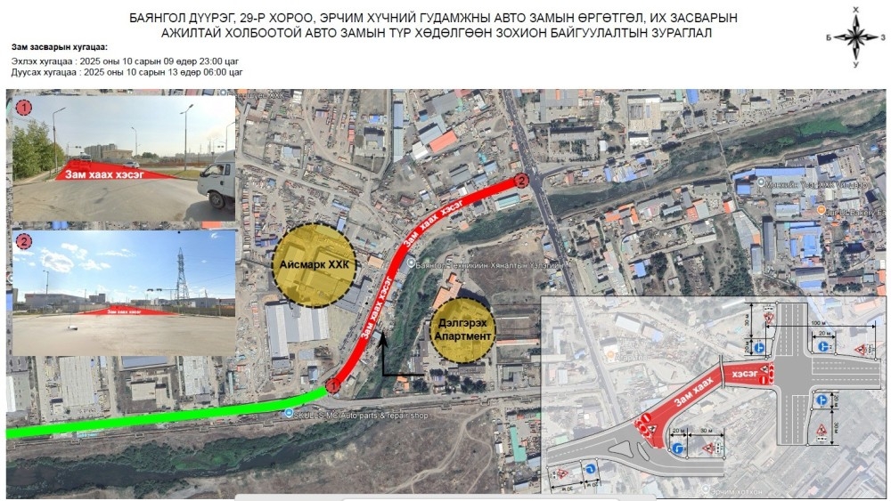 Иймд иргэд, жолооч та бүхэн дээрх хугацаанд бусад гудамж замыг сонгож замын хөдөлгөөнд оролцоно уу.