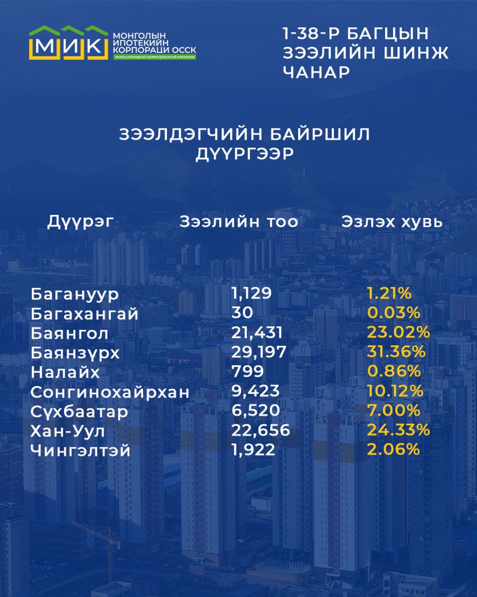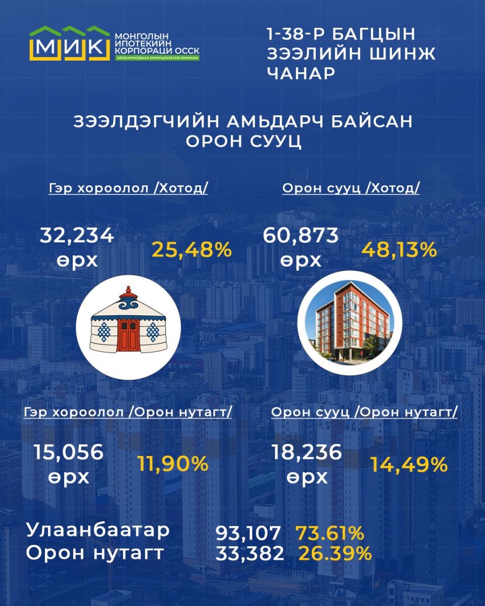 Тус хугацаанд 38 удаагийн тусгай зориулалтын компани байгуулан нийт 126,489 өрхийн ипотекийн зээлийг банкуудаас худалдан авсан бөгөөд 37.38% нь гэр хорооллоос орон сууцанд шилжин суурьшсан өрх байна.