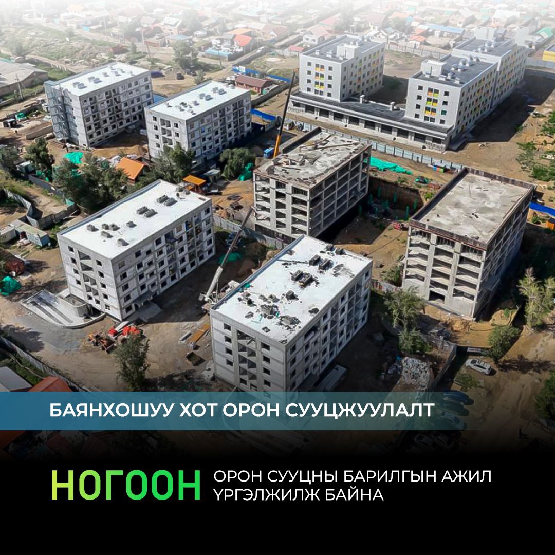 Тухайлбал, Баянхошуу дэд төвийн үлдсэн 150 айлын дөрвөн блок орон сууцны барилга угсралтын ажил 70 орчим хувьтай байгаа юм. Мөн 76 айлын хоёр блок орон сууцны барилга угсралтын ажлын явц 52 хувьтай үргэлжилж байна. Харин сүүлийн 126 айлын гурван блок орон сууцны бүтээн байгуулалтын ажлыг ирэх онд эхлүүлэхээр төлөвлөж буй.