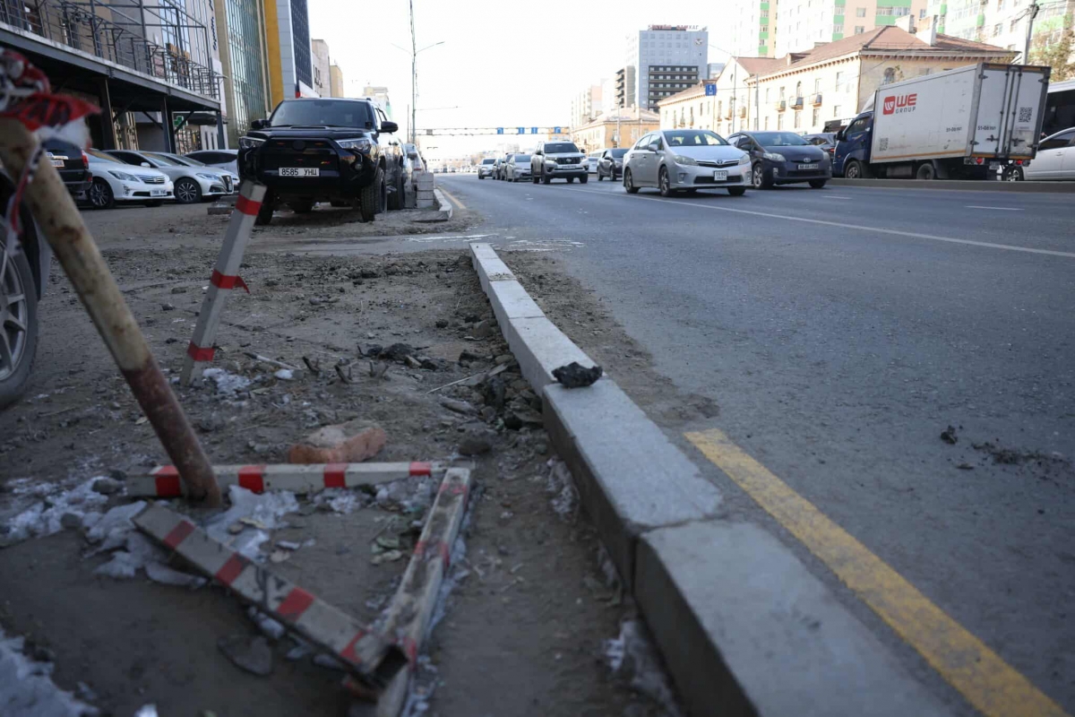 Нийслэлийн Хөрөнгө оруулалтын газрын Барилга захиалагчийн хяналтын хэлтсийн дарга Б.Ганзориг “11 Г, Д 800 мм-ийн голчтой дулааны шугамыг 1000 мм-ийн голчтой болгон 40 жилийн дараа өргөтгөлөө. Шугам солих ажлыг халаалт зогссон үед дуусгаж, дараа нь хөрсийг нягтаршуулж, хөрсний хэмжилт хийсэн. Өнөөдрөөс эхлэн явган хүний замын нөхөн сэргээлтийн ажлыг эрчимтэйгээр эхлүүлж байна. Энхтайваны өргөн чөлөөний II хэсэг, Саппорогийн уулзвараас Баруун 4 зам хүртэлх 4.7 метрийн өргөнтэй байгалийн чулуун хучилттай явган хүний замыг “ТАСО” ХХК барьж байна. Тус компанийг богино хугацаанд хариуцаж авсан ажлаа дуусган иргэдийг явган замаар чөлөөтэй зорчих нөхцөлийг бүрдүүлж өгөхийг үүрэг болгосон. Мөн Энхтайваны өргөн чөлөөг зогсоолгүй болгох ажлын хүрээнд хуучин ААН-ийн авто зогсоол байсан хэсгийг чөлөөлж, явган хүний зам, авто замын хашлага суурилуулах ажил явагдаж байна” гэв.