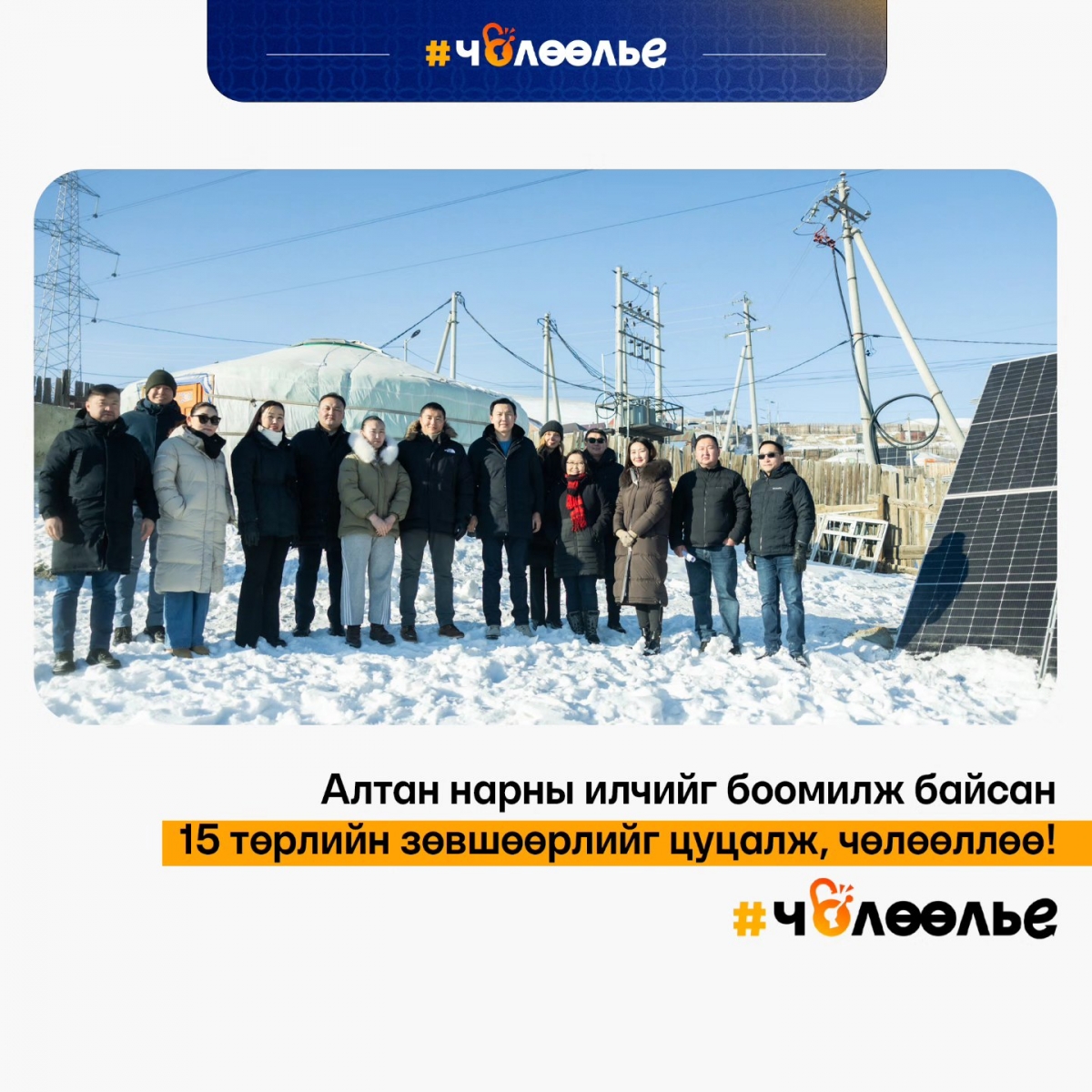 Өөрөөр хэлбэл, айл бүр нарны хавтангаараа эрчим хүчээ авч, улсад нийлүүлээд орлого олох боломж 100 хувь бүрдлээ.