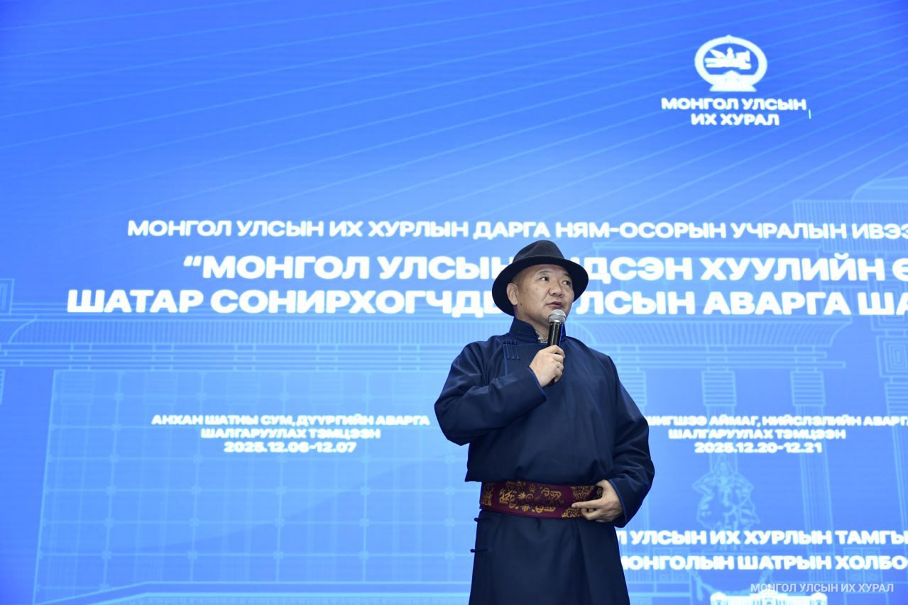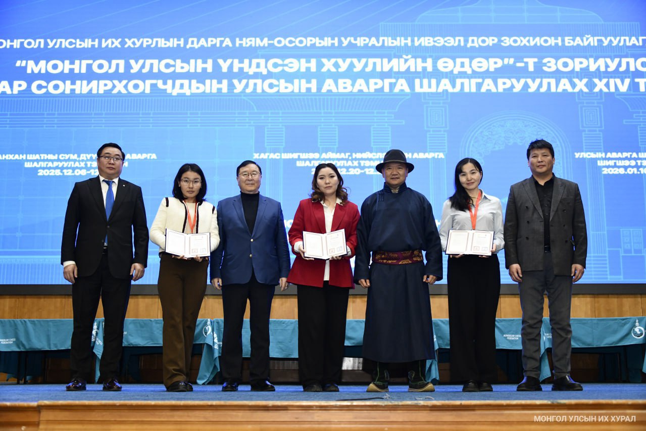 Улсын Их Хурлын даргын ивээл дор “Монгол Улсын Үндсэн хуулийн өдөр”-ийг угтаж уламжлал болгон зохион байгуулдаг Шатар сонирхогчдын улсын аварга шалгаруулах 14 дэх удаагийн тэмцээний шувтаргын тоглолт Төрийн ордонд хоёр өдөр үргэлжилж, өнөөдөр (2026.01.11) аваргуудаа тодрууллаа.