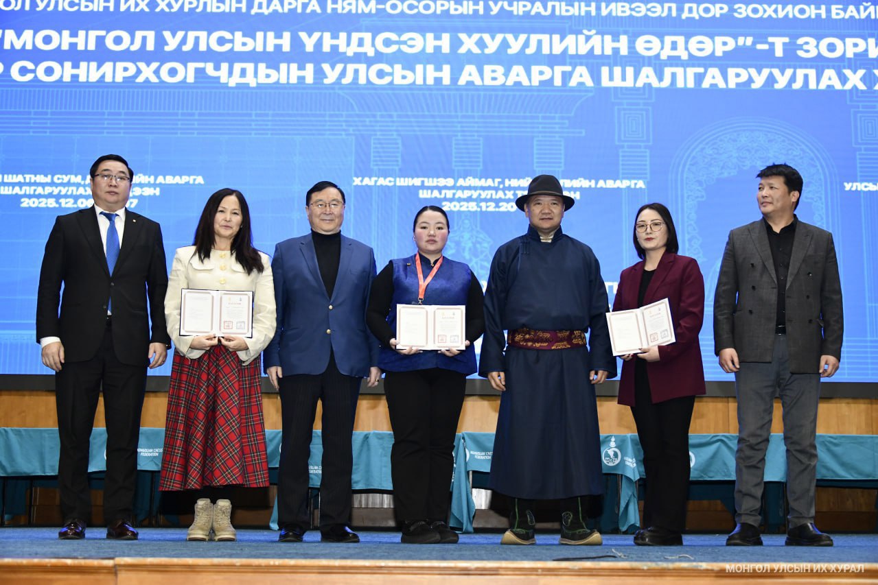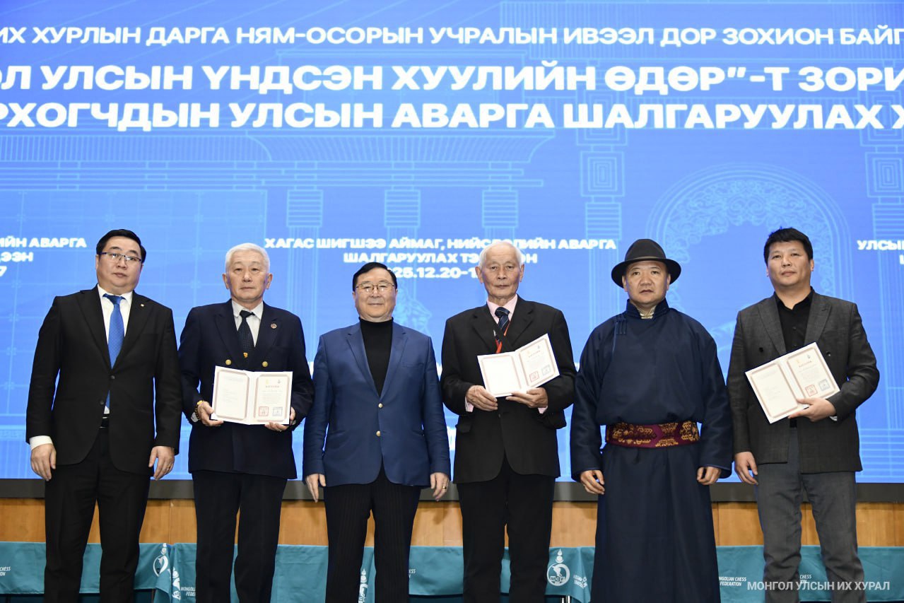 Энэ удаагийн шагналыг Монгол Улсын Их Хурлын гишүүн О.Амгаланбаатар, Улсын Их Хурлын Тамгын Тэргүүн дэд дарга П.Батбаатар, Монголын шатрын холбооны ерөнхий нарийн бичгийн дарга Б.Эрдэнэбилэг нар гардууллаа.