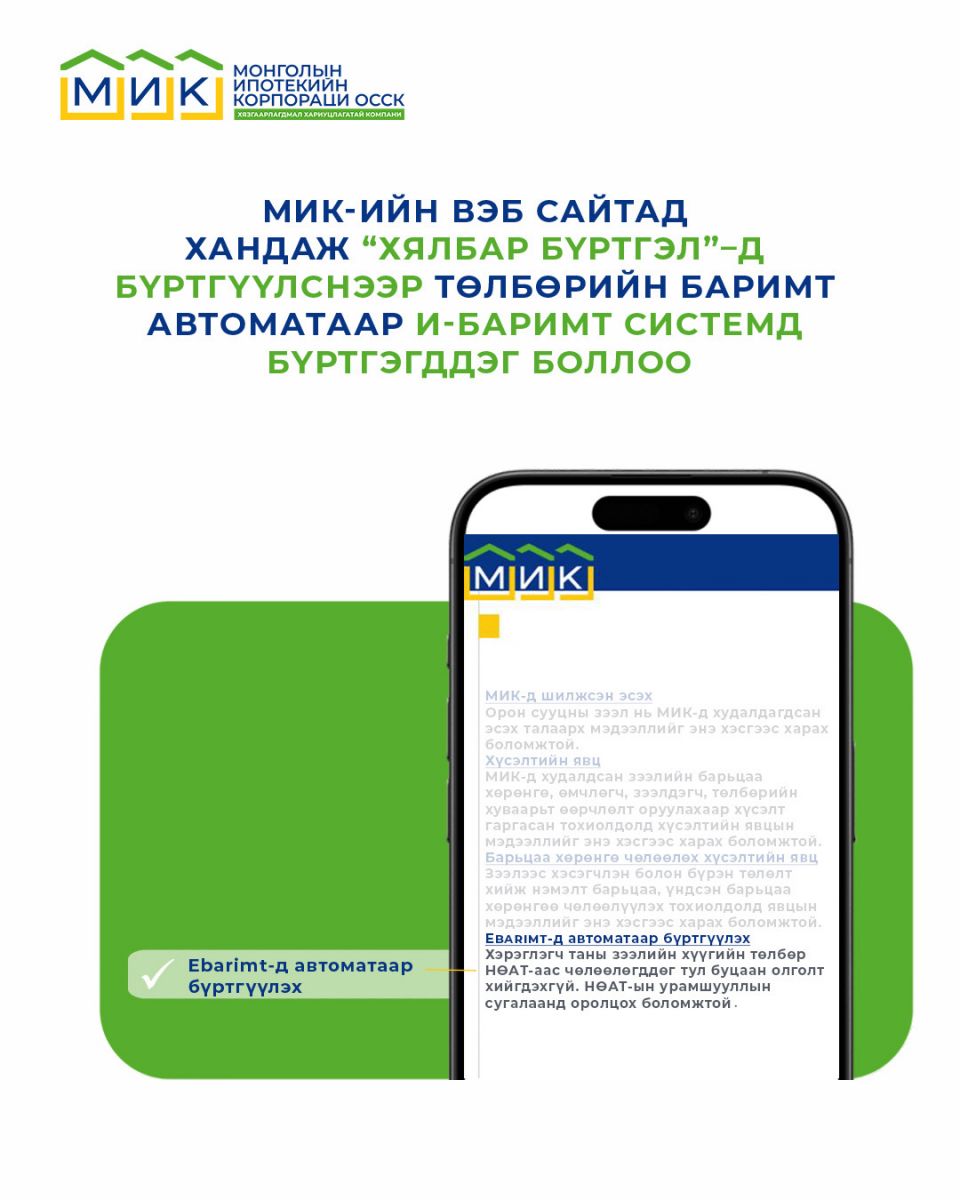 МИК-ийн вэб хуудсанд хандаж “Хялбар бүртгэл”-д бүртгүүлснээр таны төлбөрийн баримт и-баримт системд автоматаар бүртгэгдэх боломж бүрдлээ.