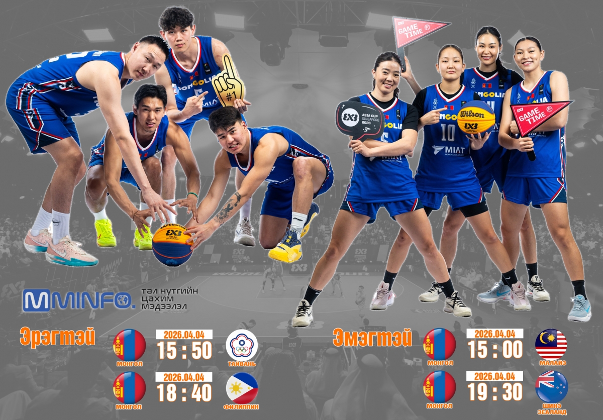 Олон улсын сагсан бөмбөгийн холбооноос 3х3 сагсан бөмбөгийн Азийн аварга шалгаруулах тэмцээнийг ирэх дөрөвдүгээр сарын 01-05-ны хооронд Сингапурт зохион байгуулагдаж байна. Өчигдөр "FIBA 3x3 Asia Cuр" тэмцээний хэсгийн тоглолтууд эхлэсэн бөгөөд өнөөдөр манай Монгол Улсын эрэгтэй болон эмэгтэй багууд тоглоно.